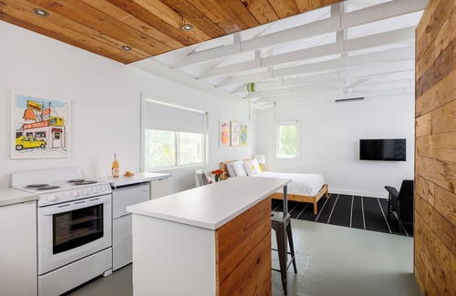 You'll have the entire casita to yourself. The casita is a beautiful recent addition to this property that is located through a breezeway behind the main home. The Pastel Casita features a kitchen, queen bed and bathroom - all the amenities you need to enjoy an exciting Austin, Texas stay.