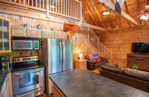 Grab your honey, your dog, or your best friend and get away to this cozy mountain cabin. The Downtown Cabin is a pet-friendly A-frame with a towering beamed living room, located just a couple minutes from downtown West Jefferson. The location can't be beat!