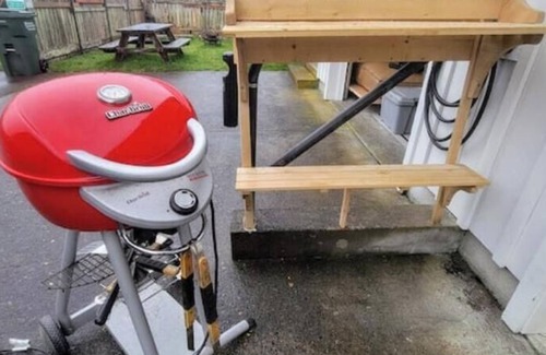 We've turned the garage into a laid-back shared game room, stretching across the entire space of two garages, so there’s plenty of room to spread out and enjoy. It's packed with a mix of nostalgic and classic games—pinball, an arcade machine with over 1,700 games, air hockey, and ping pong. There's a vintage CRT TV stacked with old VHS tapes and DVDs, plus some retro Nintendo games if you're in the mood for that throwback feel. A vending machine, a cozy leather couch, and an electric fireplace make it an easy spot to unwind. We've also set up a media station with a stereo / radio and a collection of records and cassette tapes, perfect for playing tunes and setting the mood while you hang out.