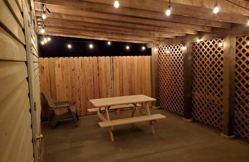 Roomy bunk-house, comfortably sleeps 4 with 1 queen bed and 1 full pull-out bed, modest bathroom with shower, flat screen smart-TV and large private covered patio.