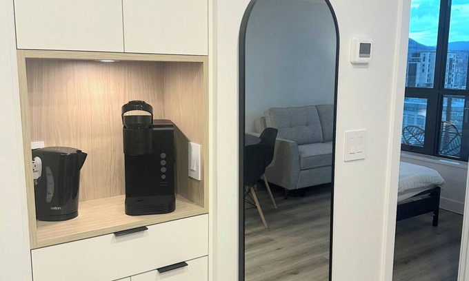 Downtown Kelowna Modern 1 Bed 1 Bath Condo + Parking is located in North End. Downtown Kelowna Modern 1 Bed 1 Bath Condo + Parking provides accommodation, featuring Air Conditioner, Bedding/Linens, Fireplace/Heating, among other amenities. This Condo features Air Conditioner, Bedding/Linens, Fireplace/Heating, to make your stay a comfortable one.