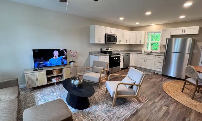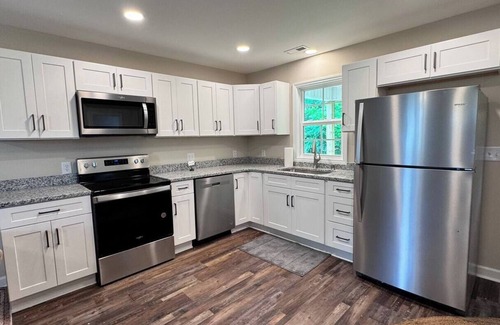 Downtown Liberty Just 5 mins walk!! This thoughtfully designed home sleeps up to 8 guests with 4 beds spread across 3 spacious bedrooms. Whether you’re a group of business travelers, a family visiting from out of town, or road-trippers exploring the charm of small-town North Carolina, this space has everything you need.