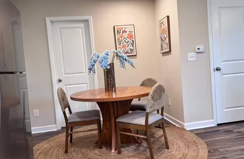 This thoughtfully designed home sleeps up to 8 guests with 4 beds spread across 3 spacious bedrooms. Whether you’re a group of business travelers, a family visiting from out of town, or road-trippers exploring the charm of small-town North Carolina, this space has everything you need.