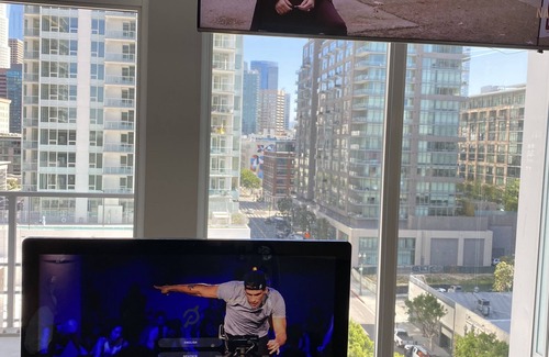 At the center of it all in a high rise over looking the gorgeous city lights an panoramic views. Rooftop lounge area and heated pool with sauna and so many more amenities. Definitely a more than memorable stay