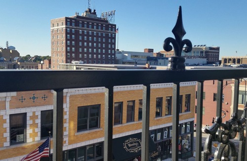 Newly built Boutique Style Efficiency Suite located on the top floor of Lofts at Beals on 9th. Suite has full size kitchenette, high end finishes and breath taking views of Downtown Columbia and the University of Missouri Campus. Located 1 block from MU campus, next door to Booches and steps away from Shakespeare’s. Price includes parking spot and flexible arrival and departure times.