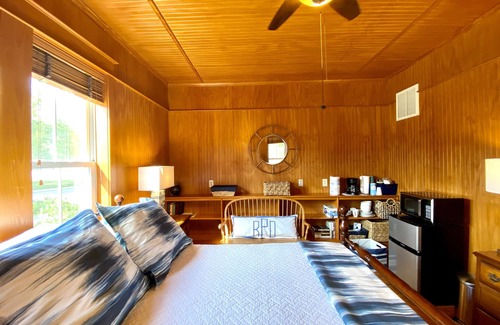 Welcome to the "Downtowner". A truly inviting, enjoyable home away from home. This one bedroom suite with separate living room is located as part of a historic home built in 1901 in the town of Manteo with a little bit of everything for you to enjoy. This spacious property with its own porch and entrance. There is one king size bed, a complete tile bathroom with a walk-in shower and a relaxing living room for watching a movie or catching up on emails. The coastal decor and tranquility of the garden will relax you the whole time you're here. The porch is located next to a spacious back yard with a folly for your morning coffee or afternoon cocktail. There are lots of locally owned restaurants in the area for your dining pleasure. The unit's kitchenette consists of a mini fridge, microwave and coffee maker. Downtown Manteo is home to Outer Banks Distillery, Ortegas Southwest Grill, The Avenue Grill, Olives, Poor Richards, Old Town Creamery, Front Porch, Charis Coffee Shop and The Pioneer Theater with a nightly showing at 8pm. Nearby is the Elizabeth II at Festival Park, the NC Aquarium, Elizabethan Gardens and The Lost Colony outdoor drama. Please send me a text about specifics and I can make suggestions to fill your time with us while on vacation.