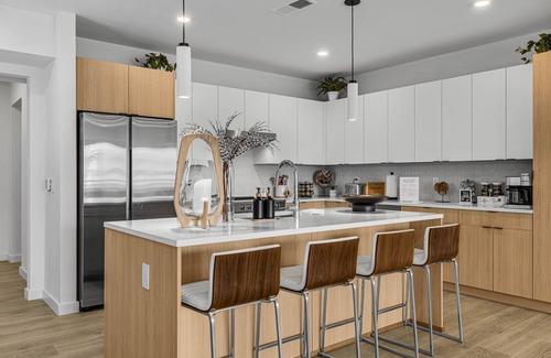 Modern Amenities: The fully equipped kitchen is ideal for preparing celebratory meals or cocktails, complemented by in-unit laundry facilities for added convenience during your stay.