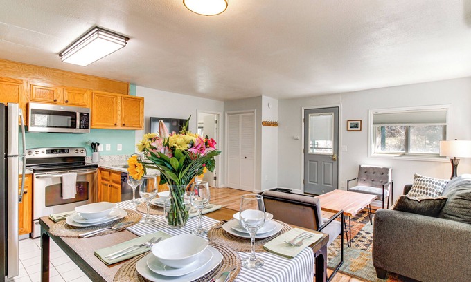 Home to eco-wonders, a rich mining history, and endless hot springs, Ouray is one mountain town you won't want to miss. And here at 'River Oak South,' you'll see and do it all within steps of your doorstep! Surrounded by towering peaks and the on-site river, this 1-bedroom, 1-bath vacation rental boasts no shortage of scenic views. Embark on high-alpine adventures, like hiking, skiing, and even ice climbing, or simply wander the charming historic Main Street. The 'Switzerland of America' awaits!