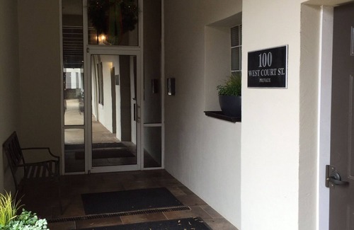 100 W. Court St. 4 B, Penthouse Unit that accommodates 4 people. Our condo has a large terrace with outdoor seating for enjoying views of Downtown. We are steps from Main Street right behind the Westin Hotel in the heart of downtown. We offer all the conveniences of home with a full kitchen and lots of open space to spread out for a few days or extended stay. The bedroom has a King bed and the sofa pulls out to a Queen size sleeper, both are super comfortable. The condo is approximately 1100 square feet which is large for a 1BR/1Bath. All the conveniences of Downtown are located literally steps away. We offer you a dedicated parking space during your stay and a coded access to the building.