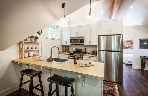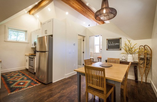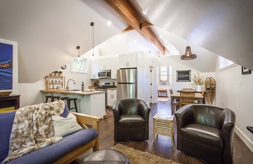 This recently constructed 650 square foot above garage loft replaced the old carriage house that was built in 1888. It sits off street behind our 2 story brick victorian residence. We welcome you to this historic neighborhood. It is an amazing location within walking distance of downtown, restaurants, bike path, trails, library, Powerhouse Childrens Museum, and other amenities. Enjoy your vacation in the beauty of this modern, fully furnished home. We have recently added central Air Conditioning for your Summer comfort