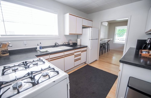 Our beautiful bungalow nestled right in the heart of downtown rogue river. This homey three bedroom single bath turn of the century home has as much charm as history. Whether a two minute walk to downtown or a 8 min walk to the river there or watching the goings on from the front porch there is no lack of things to discover in the cute little town of rogue river. Free parking on premises, fully equipped kitchen, right off the I5 freeway and 1.5 hours from Crater Lake National Park