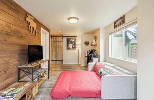 You can’t beat this location! This modern 1 bed/1 bath guest suite is just a 2 minute walk to downtown Sisters—shops, dining, coffee, and events are all steps away. Enjoy your own private hot tub, cozy fire pit, and views of the Three Sisters Mountains. The fenced yard is perfect for your pup, and a huge park is right across the street. King bed + comfy sleeper sofa. The perfect stay in the heart of Sisters! Come and enjoy a relaxing stay in one of the most beautiful towns in the PNW!