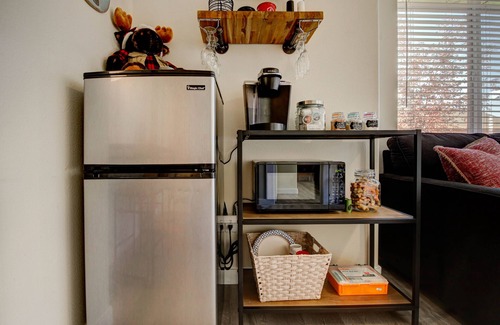 Inside there is 1 extremely comfortable King size bed. There is also a queen size sleeper sofa that is surprisingly comfy for a couch-bed! The high speed wifi and smart TV will allow you to stream all your favorite shows and movies. The kitchenette includes a mini-fridge, microwave, and Keurig coffee maker. Included in the Suite is a full bathroom. This is a completely private attached ADU. It has 1 shared wall but is completely private (no access from one unit to the other). Please also note that the HVAC system is controlled via app from the Host's phone. We keep it set to a very comfortable temperature, but if you have any issues with the temperature of the unit please let me know and we can adjust it immediately.