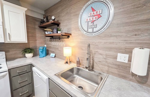 History - Originally the Dari Barn Restaurant, this building has been converted to a Modern Downtown Bungalow. Famous for their Curly Q French Fries, Burgers, and malts, The Dari Barn was the local hangout for kids walking downtown after school in the 60's and 70's..