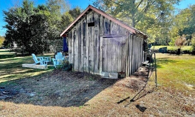 The house is a 1960's farmhouse. It's quaint and a little quirky. Three bedrooms (2K, 1Q) share a bathroom. The kitchen has table seating for 6. The house has a washer/dryer on the porch. *Please note that you are the dishwasher at this property.* Outside is a large fenced yard with a grill and firepit.