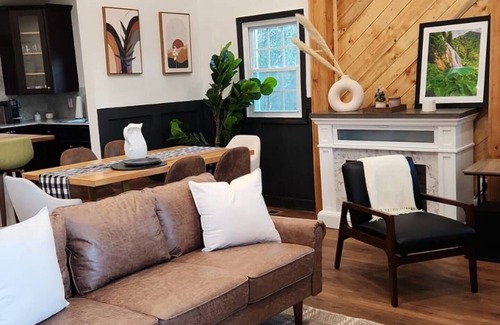 Beautiful, warm home has a frontporch and deck looking onto wood with a lovely stream. Perfect temporary housing for relocating families that need time to explore, are waiting on home repairs, or otherwise in between homes.