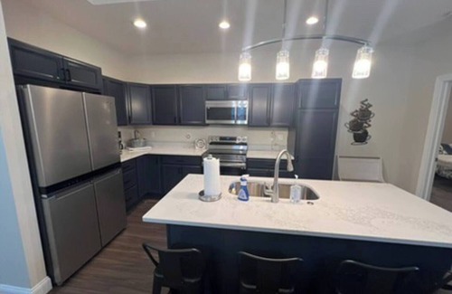 Your home away from home begins at this 4-bedroom house in a quiet neighborhood. With 1 king bed, 1 queen bed, 3 twin beds, and 1 bunk bed room, there's plenty of space for everyone. This gorgeous property features 3 full bathrooms and a half bath, a cozy living room, an additional mattress, and essential amenities, including a fully equipped kitchen, laundry, smart TV, WiFi, heating, AC, and attached garage. IMPORTANT: guest making the reservation must be over 25 years old with excellent reviews and established rental records. Please do not inquire if you do not meet this requirement. If you do, book now and enjoy everything this house has to offer!