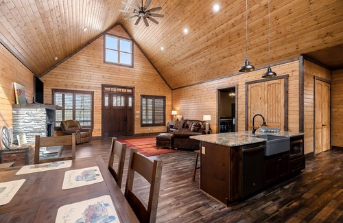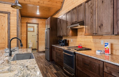 Open Living Space: Step inside the cabin and be greeted by the spacious and inviting living area. With an open floor plan, the living space is perfect for gatherings and socializing. Relax on the comfortable furnishings, bask in the warmth of the fireplace, or whip up delicious meals in the fully equipped kitchen.