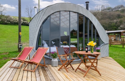 Relax on the large rotating bed or cwtch up in the warmth of the woodburner. Dragon's Eye is an award-winning cabin that featured on Channel 4's 'Cabins in the Wild' documentary, offering a completely unique opportunity for couples to enjoy the beauty of West Wales. This solar-powered cabin offers a unique opportunity to fully disconnect, as it is free from TV and WiFi, allowing you to immerse yourself completely in nature and enjoy the peaceful countryside.
