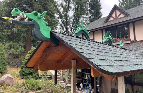 The Dragon's Lair/ Garden Loft is one of the most popular vacation rentals for 1-4 persons In the Mt. Shasta area. Privacy and solitude are the best descriptors for this space. All windows on the north side overlook the manicured garden.