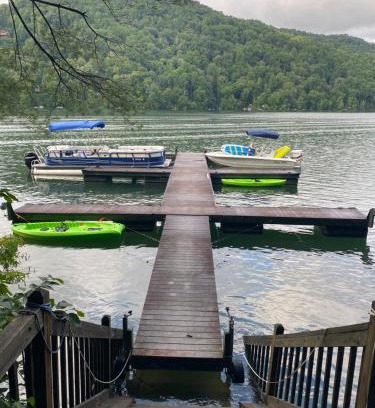 Featuring barbecue facilities, Dream Chaser Chalet at Nantahala Lake offers accommodations in Topton. This property offers access to a patio, table tennis, free private parking, and free Wifi. On clear days, guests can head outside to enjoy the chalet's outdoor fireplace or simply kick back and relax. With direct access to a balcony with lake views, the spacious air-conditioned chalet consists of 3 bedrooms. Offering a terrace with mountain views, this chalet also features a flat-screen TV, a well-equipped kitchen with a dishwasher, an oven, and a microwave, as well as 4 bathrooms with a bath and a hair dryer. The accommodation has a fireplace. Guests at the chalet can enjoy darts on-site, or canoeing in the surrounding area. McGhee Tyson Airport is 90 miles from the property.