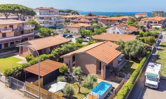 Cosy house "Dream House", 2 storeys, detached. In the district of Pratoranieri 2 km from the centre of Follonica, in the residential district, 250 m from the sea, road to cross. Private: garden 80 m2 (fenced) with lawn and wildlife garden, swimming pool (above ground) (4 x 2 m, depth 120 cm, seasonal availability: 30.May. - 30.Sep.). Outdoor shower, roofed, parking (for 2 cars) on the premises. Shop 250 m, supermarket 900 m, restaurant, bar 250 m, pedestrian zone, bicycle rental 2.5 km, 20 minute walk to the centre, sandy beach. Marina 7 km, surf school 6 km, sailing school 6 km, minigolf 2 km, riding stable 3 km, walking paths from the house 1.5 km, children's playground 220 m. Nearby attractions: Cala Violina 10 km, Parco naturale della Sterpaia 12 km, Baratti 25 km, Massa Marittima 25 km, Castiglione della Pescaia 24 km, Punta Ala 23 km. Well-known lakes can easily be reached: Accesa 23 km. Hiking paths: Mountain-Bike 1.5 km. Please note: baby equipment on request (included). Railway approx. 50m.