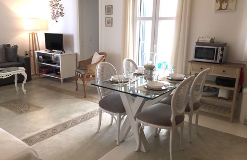 THE IDEAL PLACE TO STAY. Family-friendly luxury Mykonian style house, just a short walk from Ornos Beach and Korfos beach, the market of Ornos, bus stop restaurants, and bars. No need to hire a car. This ground-floor house is the only house in the complex which has its own deck with sunbeds and an umbrella.