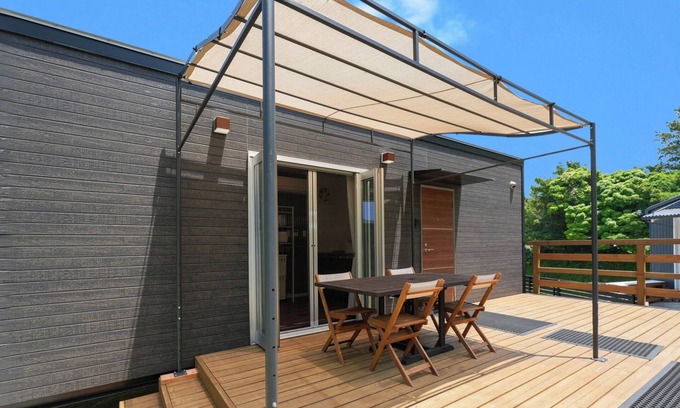 Please spend a relaxing time at Class Besso Ise on your next holiday with your family and likeminded friends / A trailer house with a cool impression thanks to its bold black walls