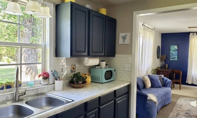 Welcome to your perfect extended stay! We love how this house allows you to unwind or gather with a thoughtful setup/ decor, perfect location under 8 minutes to 7 vineyards/ wineries as well as downtown Elkin/ Jonesville with great food, breweries, coffee houses, hiking, kayaking, festivals, fishing, car shows and more. You are truly in the heart of the beautiful Yakin Valley with a blueberry farm for a neighbor and an expansive sunset view of the Brushy Mountains right out the back door complete with covered patio to take it all in.