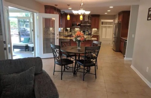 Stunning home for business travel or just a getaway. Many upgrades & lots to do in the area. Great quiet neighborhood, Beautiful large kitchen, granite countertops, large refrigerator & separate wine cooler. 2 story family room, formal dining room, sunroom, & 7 tastefully decorated bedrooms. 2 full baths & 2 half baths Back yard to die for with a pool(Seasonal), hot tub all year, BBQ & table. Washer & dryer