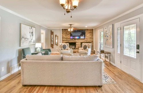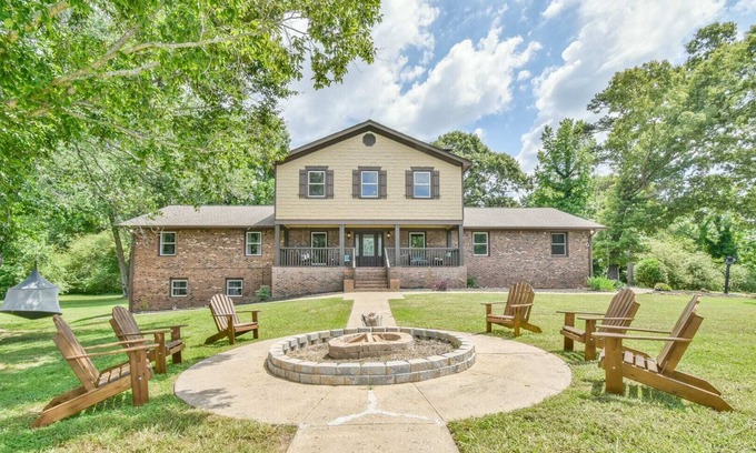 Welcome to Pebblebrook Stables located in the northern part of Georgia! Stay at this 15-acre farm with resort-worthy amenities and charming interiors. The home is located on the hill overlooking the fire pit area.