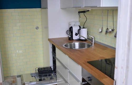 This 1-bedroom, 1-bathroom rental features a living room, a dining area, and a sofa bed. Prepare a home-cooked meal in the kitchen, complete with an oven, a stovetop, and a refrigerator, as well as a coffee maker, cookware, and a toaster.