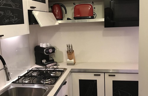 The apartment is fully equipped with dishwasher, washing machine, gas cooker, microwave with grill / oven, toaster, water cooker, espresso machine, LED TV, stereo, sunbeds and umbrella, garden table and chairs.