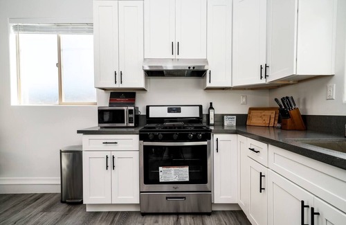 Step into simplicity and comfort at your cozy haven – a centrally-located 2-bedroom, 1-bathroom gem. This brand-new constructed guest house is adorned with top-of-the-line furnishings and finishes, promising a modern retreat for couples, working professionals, and nurses seeking respite in Los Angeles. Nestled behind the front house, it offers its own private driveway, entry, patio, BBQ grill, and an inviting outdoor dining table – your personal escape awaits!