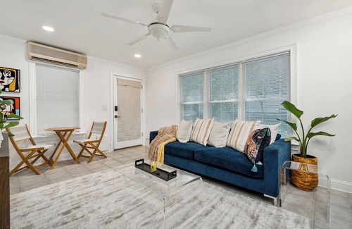 Our King Suite features a private entry area connected to the entire house. Enjoy the convenience of keyless entry from the covered porch, which leads into the stylish and fun kitchenette and living room area.