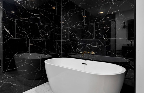 When you're ready to wind down and relax, there's no better place than our dreamy, luxurious, spa-like master bath. This well-designed bath caters to your comfort with his-and-her marble sinks, a waterfall shower/ wet room, and a beautiful, relaxing luxury soaking tub.