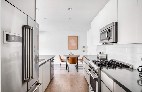 Thoughtfully designed with bespoke finishes, modern furnishings, and a fully equipped kitchen, you’ll enjoy that “I’m home” feeling with this Blueground apartment. Whether you’re lounging in your cheery living room streaming the latest and greatest entertainment on the smart TV or premium wireless speaker, or getting some well-earned rest on the superior quality mattress with luxury linens, you’ll fall in love with everything this Sharon Heights apartment has to offer. This apartment also offers in-apartment laundry.