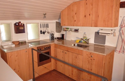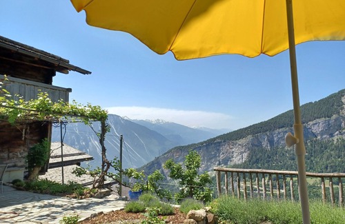 Before the house is a sheltered sun terrace. Further west in the garden (about 200 m2), there are other seats. From this oasis of peace you can enjoy a wonderful view of the Rhone valley and to the impressive mountains to Leukerbad and the Lower Valais. The sun can be enjoyed here from morning to night. Rest and relaxation are guaranteed.