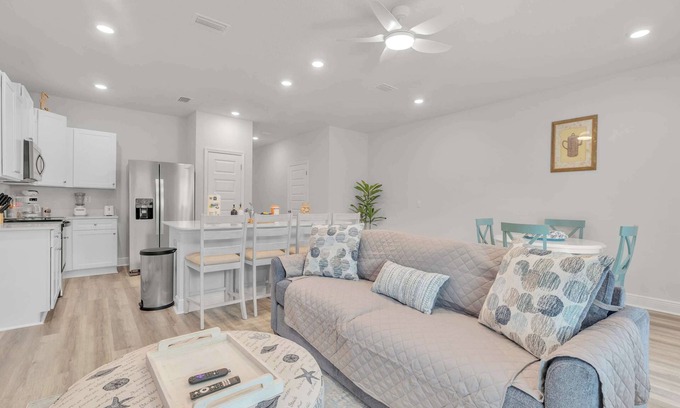 Drift Bay is a newly built townhouse, perfect for a relaxing beach getaway near a convenient boat ramp. Enjoy easy access to Woodlawn Beach, the Zoo, Off-site boat parking, and The Eatery—all just 1 mile away! We’ve thoughtfully stocked the home with cooking essentials, towels, and toiletries for your convenience. Stream your favorite shows with high-speed Wi-Fi GBPS 550 on our smart TVs, or enjoy family fun with foosball and games for the kids. With stunning beaches, Crab Island, waterparks, and more nearby, your perfect vacation awaits. Book with Ronin Stays—we won’t disappoint!