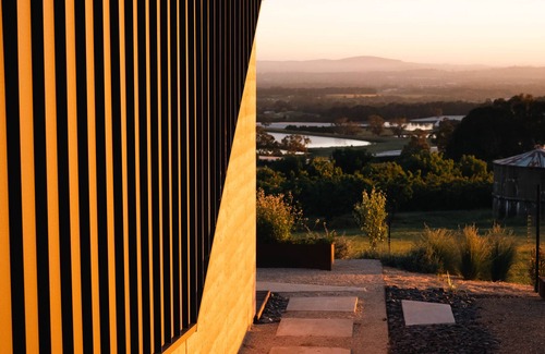 The Drifter studio has a simple yet functional layout designed to make the most of the breathtaking views of the region. Whether you're settling back into the lounge, feet up in front of the wood fire, laying in the king size bed, relaxing in the bathtub, enjoying dinner on the deck or preparing it in the kitchen - you will not grow tired of the amazing vista. Built 80m apart, each studio has been constructed with utmost precision featuring rammed earthen walls and spotted gum interiors. They have then been furnished with the same quality ethos we take to growing fruit on our commercial cherry orchard. Your comfort and experience is our top priority so when you leave, you leave relaxed and rejuvenated.