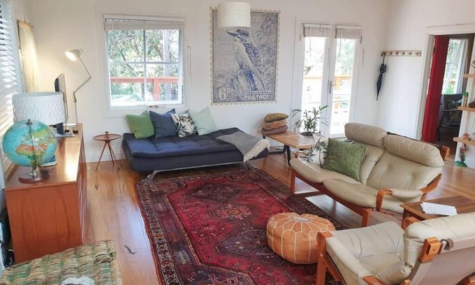 Open plan Coastal Cottage with a sunny & peaceful front deck,enjoy visiting parrots & abundant wandering wildlife in a peaceful nature setting.BBQ on the front deck.