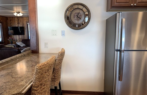 The dining room seats 6. The kitchen is open to the dining area where there is extra counter seating.