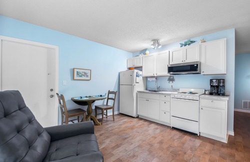 Unit 5 is conveniently located downstairs poolside with a view of Tarpon Bay. The screened porch is perfect for relaxing sunsets. The unit has had extensive remodeling completed early December 2023. Our kitchen is equipped with new cabinets and appliances - stove, oven, fridge, microwave, and dual coffee maker (can handle a pot of coffee or and individual keurig cup of coffee.)