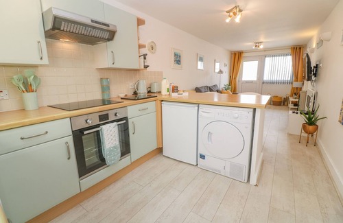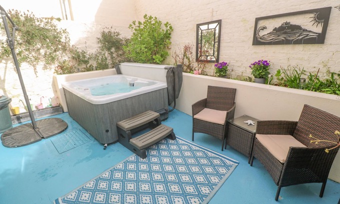 Electric central heating with underfloor heating in shower room. Electric oven and hob, microwave, fridge, washing machine, tumble dryer, coffee machine. Smart TV with Sky package, WiFi. Fuel and power inc. in rent. Bed linen and towels inc. in rent. Off-road parking in private car park on a first come first served basis, additional parking available in long-stay car park nearby (at an additional charge not payable to the owner). Front garden with astro turf and seating, rear enclosed garden with patio, furniture and hot tub. Sorry, no pets and no smoking. Shop and pub 0.2 miles, beach 0.1 miles. Note: This property does not accept children, only babes in arms. Note: This property accepts Friday changeovers only - no arrivals can be accommodated on other days of the week.