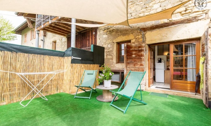 Gite on the ground floor of the owner's house with independent access: studio with a kitchen area (combined microwave oven), a relaxation area with a double bed 160x200 cm with an armchair, television (Canal Plus and CanalSat ), a bathroom (shower and WC). Private shaded terrace, flat land of 2500 m². Living room in the old bread oven with TV, fridge, oven, hotplates and barbecue. Private parking at the entrance of the property. Gite renovated in a former barn from 1846, on the ground floor of a country house. Studio full of charm and character with the wooden and metal feeders, pleasant with the shaded terrace and original with the summer living room fitted out in the bread oven! An unusual room with vintage furniture, a barbecue and a hammock! All-inclusive services, including end-of-stay cleaning.