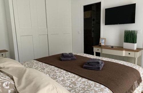 Providing garden views, Du sable et des pins in Le Verdon-sur-Mer features accommodations and an open-air bath. With pool views, this accommodation offers a terrace and a swimming pool. The villa provides rooms with air conditioning, free private parking, and free Wifi. Featuring a fully equipped kitchen with a dishwasher and an oven, each unit also comes with a cable flat-screen TV, ironing facilities, desk, and a seating area with a sofa. A microwave, a toaster, and fridge are also provided, as well as a coffee machine and a kettle. At the villa complex, each unit is equipped with bed linen and towels. Guests at the villa will be able to enjoy activities in and around Le Verdon-sur-Mer, like walking tours. Guests at Du sable et des pins can enjoy cycling and hiking nearby, or make the most of the garden. Maison de Grave Beach is a 19-minute walk from the accommodation, while Gironde Estuary is 3.2 miles away. La Rochelle - Île de Ré Airport is 57 miles from the property.