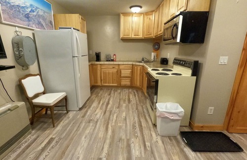 Beautiful studio apartment in Duck Creek Village, Utah located in the gorgeous Southern Utah mountains. Accessible year-round, you can enjoy all seasons in comfort. ATV and Snowmobile trails allow you to ride straight from the parking lot in front of the front door. The bedroom is separated from the rest of the apartment by a locking door and includes a king-size bed and full closet. Full bathroom, kitchen, dining area and full size queen Murphy bed couch complete this ideal sanctuary away from the heat.