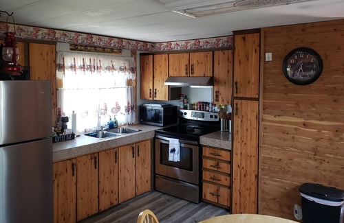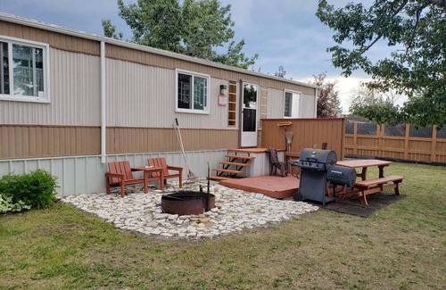 Located in Babb, just minutes from Glacier National Park, Canadian border and many fishing and hiking opertunities. Enjoy the privacy this 2-bedroom mobile home has to offer. With 2 queen beds, WiFi, heating, fully stocked kitchen and 2 bathrooms with a shower and hair dryer, this charming property is perfect for guests looking for a delightful stay. Our place is equipped for both long or short stays to make your holiday one to remember.