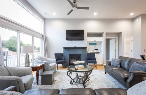 Spacious dining/kitchen/family room area with bamboo floors and new appliances and kitchenware. Large sun deck off the living room and dining room with picnic table for dining al fresco, half bath. Master Bedroom (with King with soaking tub, shower and double sinks).