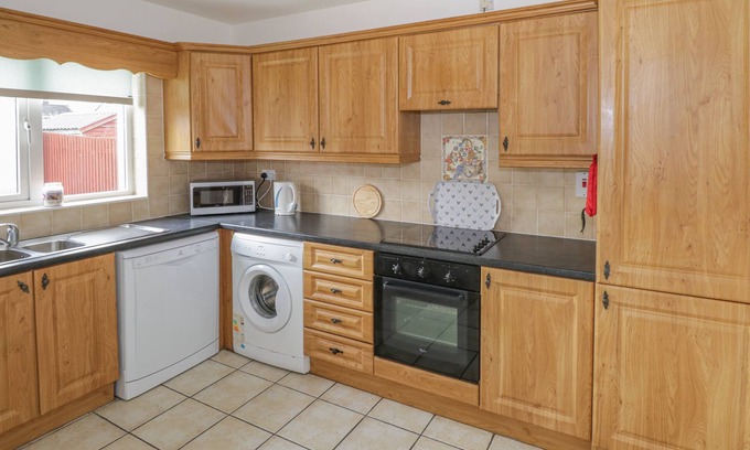 Amenities: Oil central heating and open fire. Washing machine, dishwasher, tumble dryer, electric oven and hob, fridge/freezer, microwave, TV with Freeview and WiFi. Fuel, power and starter pack for fire inc. in rent. Bed linen and towels inc. in rent. Off-road parking. Rear lawn area. One pet welcome. Sorry, no smoking allowed. Shop and pub within 0.3 miles